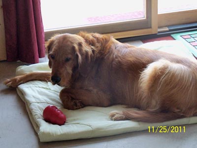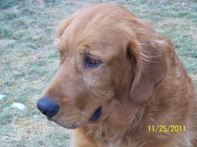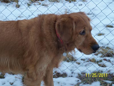 I am so excited to introduce you all to Abe!! He is one HUGE dog, he comes weighing in at 114 lbs. This is not terribly overweight. He could stand to lose maybe 10 lbs. but that still keeps him over 100 lbs.! He looks ALL Golden and gives the Golden nudge , but if you look closely at his face you will see around his eyes and cheeks he has really long hairs and whiskers, he also has this long hair between his toes. His temp foster thought that maybe a little Irish Wolfhound and that sure fits the bill and this would explain why he is so big! But other than the long hairs he looks nothing like an Irish wolfhound and all Golden, so who knows.
