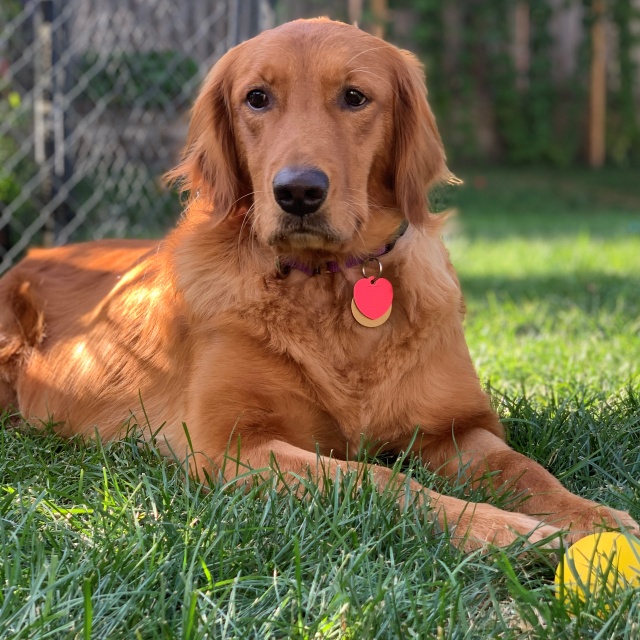 Amber is a four-year-old gorgeous female Golden Retriever mama who came to RAGOM from a breeder in Minnesota. She was pretty scared and shut down when she arrived but is ever so gradually coming out of that shell and starting to trust and see what a great life she can have. She still startles easily and is very leary of hallways and surprises. Because of this Amber can not be in a home with shared walls or hallways. Amber will need another medium to large confident dog (or more) in her new home to continue showing her the ropes. Amber will be fine with children over age 10 and can live with cats. A fence is a requirement for Amber to keep her safe as her background makes her a flight risk. Amber loves getting lots of pets and enjoys being around her foster mom and dad. She will be a really nice companion for a family who is patient and willing to watch Amber unfurl from her past at her own pace. She is a beauty and will fit in with any resident dogs.