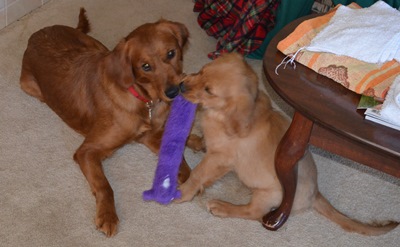 My name is Angelita. I was born August 8, 2013. My Momma is Rosa 13-330. I am a happy go lucky puppy. My favorite things to do are play, eat, nap, play, cuddle, eat … I think you get the picture! Since I am still little I am still learning all the things that a dog should know, so positive training is a must. FM says that I will really enjoy puppy school and will meet lots of new friends. It is also a great way for me to bond with my new family. I have learned to ring the bell to go potty and haven’t had any accidents for about 5 to 6 weeks. My FM and FD tell me that I am not only good looking but I am a very smart girl too. I am up to date with all my shots and will be spayed soon.