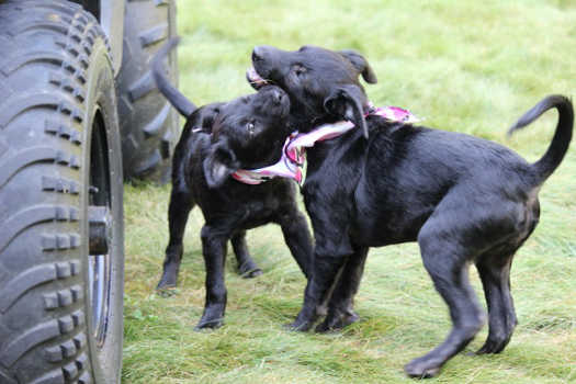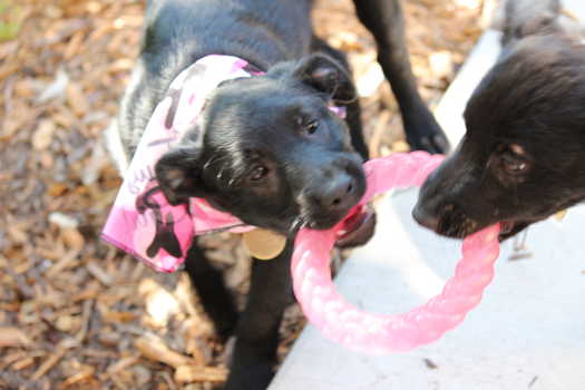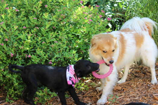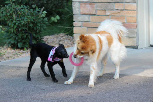Playing with the resident dog