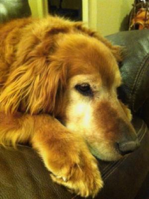 Please welcome Miss Bailey to RAGOM. She is a sweet 10 year old purebred golden girl. She was living just down the road from us and we had no idea that she needed a new home. Her primary owner sadly passed away several years ago and she has been living outside ever since as the owner's husband works long hours and she was having accidents in the house.