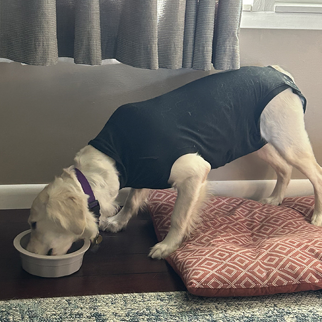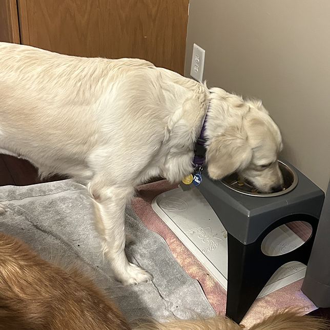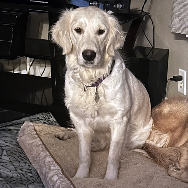 Bayla came into RAGOM from a commercial breeding environment. Everything about living in a home is new to her, but she is gradually adjusting to the wonders of being a house dog. She is easily startled by new and loud noises, so any children should be old enough to understand her needs. She can live with cats and will require another dog in the home to model and learn from and she must be kept safe in the yard with a physical fence. Bayla will blossom into a loving, confident companion dog in a home that provides her with affection, guidance, training, and patience.