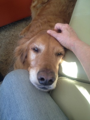 Benji and Brutus are a beautiful bonded pair of PB Goldens. They are littermates, are 7.5 years old and will be 8 in June. They have been together all of their lives with the same loving owner and they need to stay together as they are best friends. They were surrendered to RAGOM because their owner relocated and was unable to bring them with. They are extremely well socialized, very friendly, happy, housetrained, affectionate, and have free roam with no destructive behaviors. Benji is particularly “Golden”! What does this mean? It means he has perfected the “Golden Nudge”. This is a secret Golden trick to obtain petting from anyone in the room. It consists of coming super close to you and nudging your arm/hand with his nose in order to insure he gets pets. Brutus will then take the clue and nudge his way in also! In a short time you will have the most beautiful 4 brown eyes starring at you with smiles that you cannot resist! As I am writing this Benji is sleeping on top of my feet. Isn’t it nice that he wants to help keep me warm on this cold day! What a sweetheart!