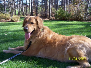 Big Rusty has arrived, and he is BIG! He was surrendered due to his family having to relocate and could not bring him with. They are very sad about this and want to make sure he goes to a great family. He is a full bred neutered Golden Retriever, and around 140 pounds! He is roughly the size of a Saint Bernard. He is 3 years old, with a birthday coming on December 29th. He is up-to-date on all his vaccs. He does need to be microchipped, so I'll be bringing him in to the vet sometime this week.