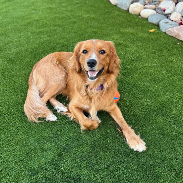 Bingo = joy on four paws! This 1.5 year old retriever is playful, snuggly, and full of love. Lovingly surrendered to RAGOM by his owner, Bingo is great with dogs & cats, working on his manners, and always up for fun. He does well with children of all ages. A physical fence is optional.