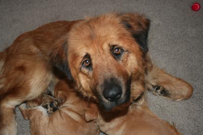 She is still nursing her puppies and they will stay with her for a few more weeks until they are 8 weeks old. We have fallen in love with her, and her expressions and play pawing tell us she so appreciates every nice thing people do for her. Now that she is in RAGOM, she will be treated like the wonderful dog she is!
