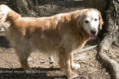 2/7/06: Meet Boomer! Boomer is a 10 year bundle of love. He loves people, car rides, and getting brushed and manicured. Boom Boom is perfect in every way except one.......he does not like small to medium sized furry things, such as cats, small dogs, etc. He gets along fine with my 3 Goldens, but the Poodles are another story. He also didn't care much for a Spaniel he met. Boomer has a bad back leg, an injury that wasn't treated properly. He still gets along well going up and down the stairs and on wood floors. I think that if Boomer drops a few pounds and gets on a good diet of glucosamine, fish oil, and a buffered aspirin per day, he'll be fine. He's very laid back, doesn't demand a lot of attention, happy to be sleeping at your feet. He sure is a love bug. More later.....