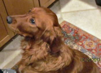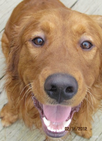 Bowen is an energetic 10 month old puppy who is as cute as can be. He’s 60+ pounds already with a beautiful deep red shiny coat, sparkling white teeth, and big puppy feet. He’s been busy the last few weeks getting caught up on his shots, being neutered and learning how to be a civilized golden retriever. He’s starting to grow his coat and I think he’s going to have a lovely tail with great feathering on his legs. We think he’s going to grow up to be quite a handsome dog. He’s a very enthusiastic tail-wagger and has already perfected the golden retriever nudge to let you know when you need to give him a bit more attention or toss a toy.