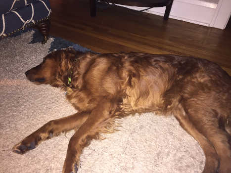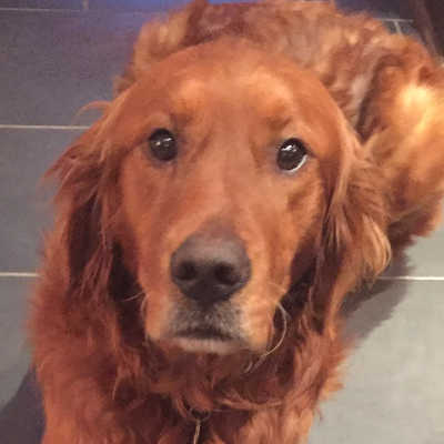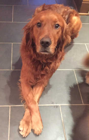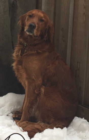 He was named Buck by his Good Samaritan, but now responds to Buddy. He was found in the middle of a field in a remote location, shivering, cold, and scared. Once the Good Samaritan got Buck in his warm truck, he went to pet Buck, and Buck instantly laid his head down on the Good Samaritan’s lap, closed his eyes, and just took the attention in. He is a handsome dark red/copper purebred Golden Retriever, neutered, in great shape, and about 5 years old, but one vet said he may be younger.