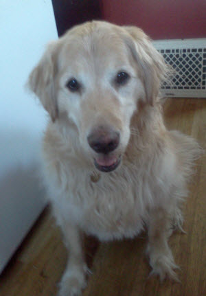 Buddy has been a dream since coming to our home. He always has a toy in his mouth and has learned the joy of playing knee hockey with my two boys. Buddy sure knows how to get to that ball and the boys are trying to teach him to put it in the net instead of running off with it. That a way Buddy!