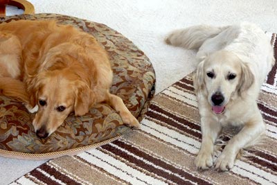 Having lived in a barn and an outside kennel, she is also not housebroken. We are working hard on that part. Until today, we went outside with her several times a day to make sure she was taking care of business. Even though she has a great mentor in our 4 year-old resident Golden, Cara is not totally confidant yet. So when she is inside, she is on a tether leash and taken out whenever she appears nervous. It’s taken many small steps, but I think she’s finally beginning to understand the difference between outside and inside. When she is in her crate, she keeps it clean. She sleeps in the crate at night and is quite good there until about 6 a.m. when she barks to let us know she’s ready for the day to begin – whether we are or not!