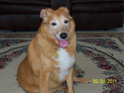 My name is Carrot, yes I said Carrot, now that I have your attention let me tell you a little about myself. I am a spayed female Golden mix, I will be 9 years old in July and I weigh about 70#. The weight is an issue and we are working on losing some weight. I am a kind, gentle soul who does not require a lot of activity, although foster mom, dad, sister are making sure I get my walks and exercise so I can lose some weight. And now that we have started our walks, I get very excited to go and really enjoy getting out and moving.