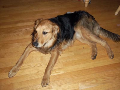 I am fully house and crate trained. I like to sprawl out on the floor mostly, but if you say it's ok I will cuddle with you on the couch. As for night time I sleep in my kennel (please have a large one for me). FM says I'm also very good outside and I walk nicely with a flat collar and leash. I do need to be reminded to sit first so my mind is open to you and not off wandering. FM also says I would probably need a physical fence or trained to an invisible one, since I have lots of energy and love to explore.