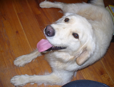 This very pretty girl is Cassie, she came from a shelter in southern Iowa. Cassie was surrendered to the shelter by her owners, who were having a baby and didn't feel like they'd be able to take care of both. Cassie was great in the car on the ride here. She immediately got along with our female resident, and they've been running and playing outside. The shelter said that Cassie loves water, and adored playing in their plastic swimming pool, so we'll have to test out her swimming skills. She's going to the vet in the morning, so we'll have more info about her after that!