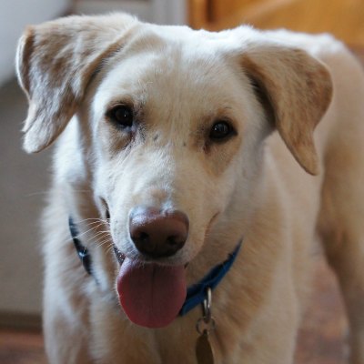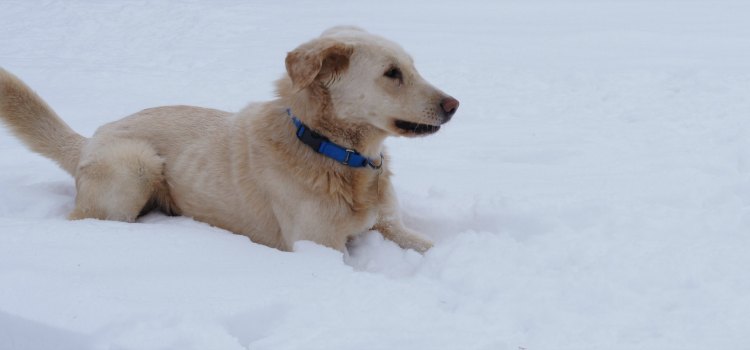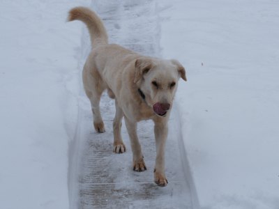 Very little is known about his past, but it's obvious he has been under socialized as he is scared. He warmed up to us rather quickly and gets along great with our two resident dogs-his tail wags as he explores our house or if they go outside to romp in the snow. Our vet feels he is 3-4 years old. Although he gets a little nervous at first, he does ride well in the car and walked on a leash into the clinic. He weighs 52 pounds but needs to gain a few more.