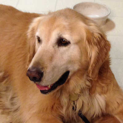 Charlie has been with us for a few days now and seems to be settling in. He was dirty, smelly, and matted when he arrived, so he went to visit the groomer today. He had a few issues with the groomer. It seems he does not like a bath or being groomed, and snarled at the groomer a few times. He looks and smells much better now, but had to be shaved down. He looks more like a Yellow Lab than a Golden, but his coat will grow back in time.