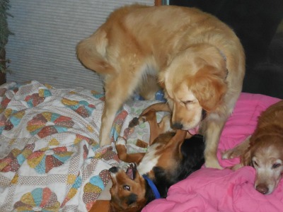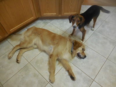 Let me introduce myself. My name is Charlie and boy did I come a very long way to get here in America. I came from Turkey with a group of other Goldens that RAGOM brought over. But I came over with a friend that foster mom calls a "wanna be". You see, the friend that came over with me is Daisy. She is a Beagle mix. She sure is a cutie. (Wink wink.) They tell me that they do not know a whole lot about me except that this kind lady in Turkey, (I think she was a volunteer of a shelter, but I do not know that for sure) was watching me and she also brought in this really cute little dog when I was there and we fell in love!!! We were bonded, so RAGOM said that Daisy could come, too. So we came as a pair. How lucky can someone be with twice the fun and twice the lovin'?