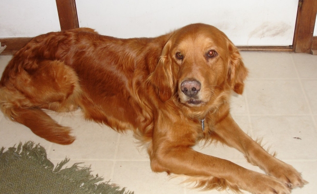 4/13/06: Welcome "Chica Belle of Holly" (full AKC name) to the Twin Cities! Chica came from Northern MN this week with her brothers Merlin and Willy also featured on this page. She is 6 years old and a beautiful red, weighing in at 54 pounds. She's a petite little girl who is as shy yet friendly as can be. She was trained as a hunter and is great with all whistle and verbal commands. She also loves to ride in the car. The daughter said she hunted in Iowa so she is used to long car rides. The man who surrendered these sweeties had to be placed in a nursing home and all of the dogs were treated kindly and with great care. Chica did have a litter of 10 puppies last June and now she will be getting spayed on Friday 4-15-06. She comes with AKC papers and all of her vaccs up to date. She is one of the most laid back dogs I have encountered. She would be great with young children for a family looking for a gentle spirit. So far she even is ignoring the house cat! She loves to snuggle but will go find a cool place to lie down too, unlike most Goldens I know who are always at your feet needing love. Hurry up and express interest in this girl, she will go fast!
