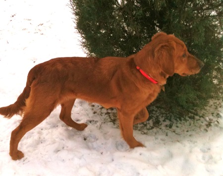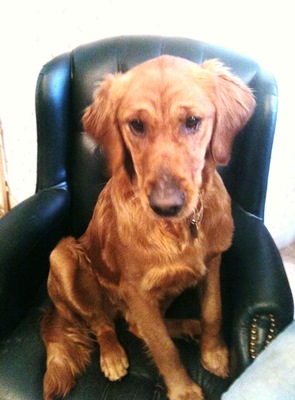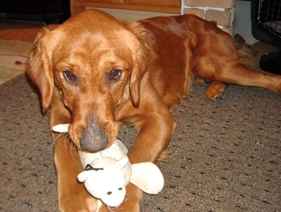 Claire is a happy-go-lucky exuberant one year old female Golden Retriever pup. She is a 49 pound bundle of adolescent energy who wins over everyone she meets with her goofy smile. Claire was found as a stray in South Dakota and was placed in an animal shelter. The two weeks she spent at the shelter were agonizing for Claire. She was literally bouncing of the walls in her kennel, so much so, that she rubbed some skin off her nose.
