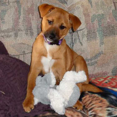 Welcome Cookie to RAGOM! She came all the way up from Georgia a couple of days before Christmas with her siblings. She is a 10-pound, 13-week-old Shepherd/Retriever mix, with short brindle-colored fur and a black nose.