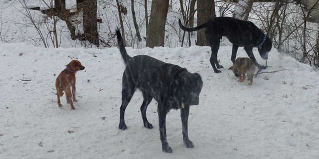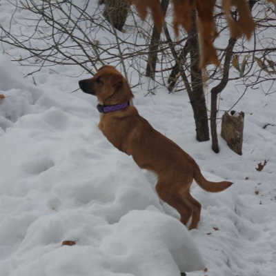 Welcome to winter! She has been here almost two weeks, and is already potty trained! A couple of accidents at the beginning when it was REALLY COLD, but now she knows to go outside. Never once has she had an accident in her kennel, which she shares with her sister Libby 13-425.