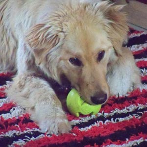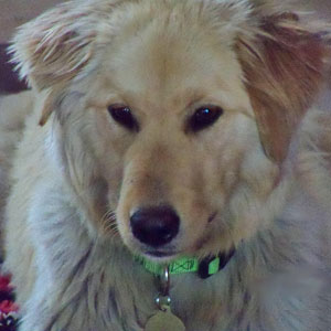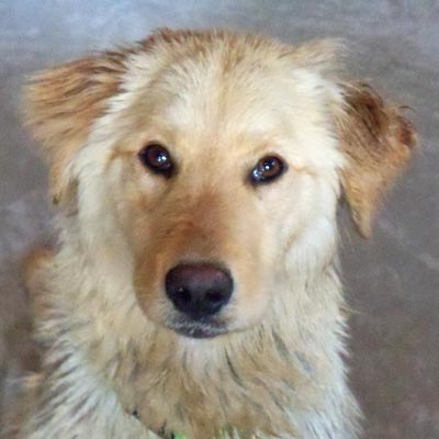 Oh where do I even start with this sweet girl! Her name is Dandi, she is 1.5 year old GR mix female, spayed. She only weighs in at about 40#! She is underweight, dehydrated, came to us full of ticks, burrs and stinky!! She has been a stray and has had no care at all. Well that is all about to change.