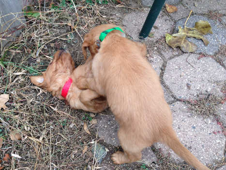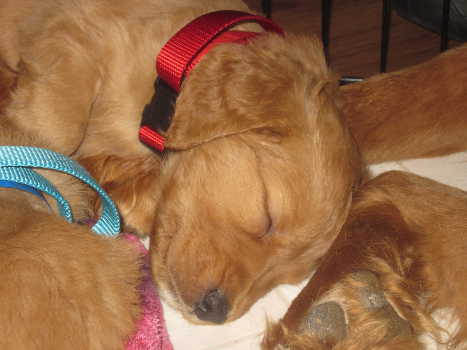 Denali is our little explorer! He is the pup that always wants to go outside. He has escaped the puppy pen more than once. This morning, I heard crinkling and when I went to check, he was outside the pen and had his head in the puppy chow bag! You gotta love a curious puppy!