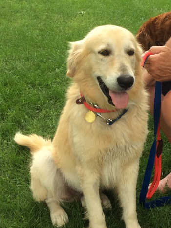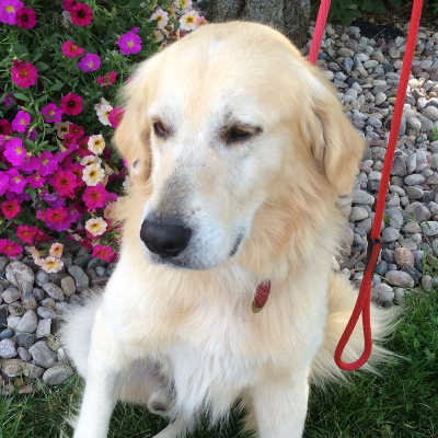 Dickie had his hernia repaired, has been neutered, and is up to date on all his shots. He is quite tall and weighs 63 lbs. He should gain another 5 lbs. He, of course, is very highly prey-driven, because he had to search for his food. We are working hard to divert his attention to something else when he sees a squirrel or rabbit. He is getting much better about walking with a Gentle Leader. He loves people and will seek them out for attention.