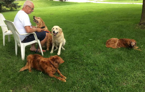 After our walks, I will give all the dogs a treat. I make them all sit, and one by one, they all get rewarded. Dickie knows now that he will be included in getting a treat and doesn't have to try to force his way to get it. Dickie likes to be outside with us. He loves attention and is very affectionate. I tell him often what a good boy he is, and I can almost see him start smiling.