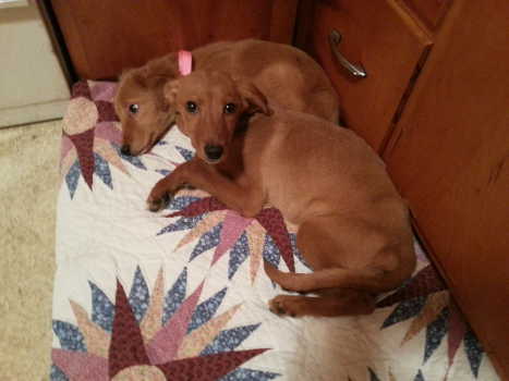 For the rest of the weekend, it was a job to keep Dreamer from trying to play with Kai, who just didn’t have any energy. It was so hard to be holding one puppy that barley had the strength to hold up her head and watch another puppy dance and play, giving stuffed toys the death shake as she ran around with them, but we were so happy that she was becoming the puppy she was meant to be. I like to think that Dreamer gave Kai some of her strength to help fight this second viral attack. When Dreamy girl was ready to take a nap, she would seek out Kai and curl up next to her. The girls look very sweet when they are all snuggled up. I know that having each other throughout this whole ordeal has provided a great deal of support to both.