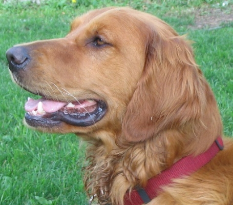 Duke is a smallish, 65-pound, three-year-old, recently neutered male with a bit of zeal in him. He is reddish gold with a black nose and expressive brown eyes that compliment his wonderfully wavy and soft coat.