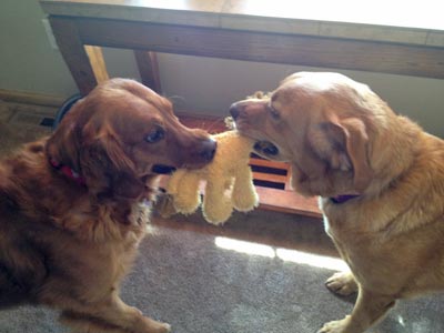 RD Cashew playing tug-a-war with Duke