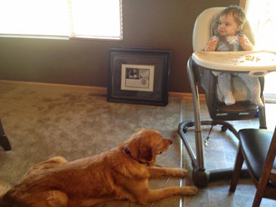 Duke took treats nicely from our first hello. He knows some commands already. Duke can sit, shake, lay down, and drop when he has a toy. Duke is very eager to please. He was very excited to meet his new four-legged foster brother and one-year-old foster sister.