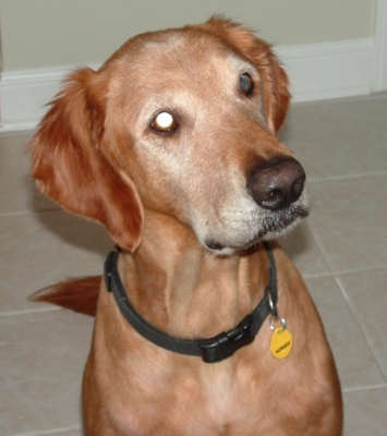 6/15/05: Duke is a purebred, 6 year old, neutered Golden we picked up from a family last night who loved him enough to want him to have a better life. They got him as a puppy and loved him very much, but simply did not feel they had enough time for him. Because he has been well taken care of, he is an exceptional dog. He met our resident Golden girl with no problem at all and, even though he had never seen one before, he met the cat in perfect gentlemanly fashion.