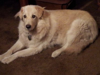 He is crate trained. We had to take the mats out of his coat and give him a bath and he has the patience of a Saint! A very good boy! He does not know sit or down and are working on that. Ember does come when called. That is pretty good for a dog that was just named three weeks ago! Ember is a very sweet dog and he bonds to you very quickly. This dog does not bark. When I get home from work, he will "Roo Roo Roo" to you softly. This goes on for about a half an hour. He is just so happy to see you! Ember is definately a velcro dog and just loves attention but is not pushy about it. He loves to be petted and stroked and lays down next to your chair. Ember will roll over for a belly rub! He does have the Golden habit of following you room to room though. He rides in a car great and just lays down in the back seat and relaxes. He takes treats very gently and gives gentle kisses. He is great with kids from what the good samaritans have told me.