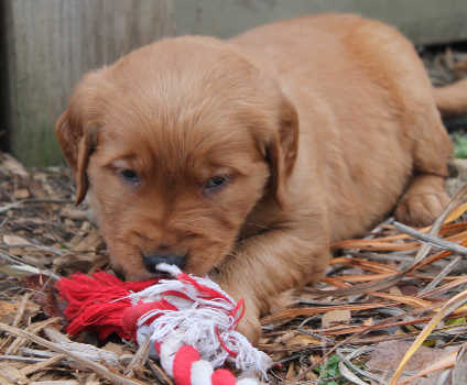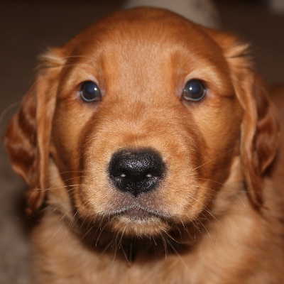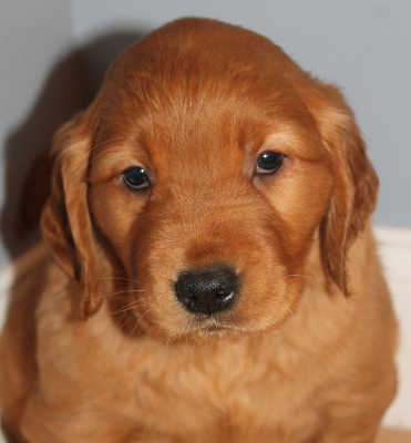 Hello, world. My name is Evan and I am a 5-week-old Golden Retriever that came into RAGOM with my momma and my brothers and sister from a breeder who decided to retire. First, I want to thank everyone who has been sending me such cool things! My favorite things to do are to eat, play, and poop, so all the extra food, toys, and towels - to name just a few things - have made life easier for foster mom. My siblings and I are doing very well in foster care. I have the darkest coat of the 5 pups and my foster mom says I am mischievous. I broke out of the puppy pen on my second day here and I love to go looking for trouble. That’s what makes me so cute and sweet, FM says. She may have whispered in my ear that I am the favorite, but don’t tell anyone else that.
