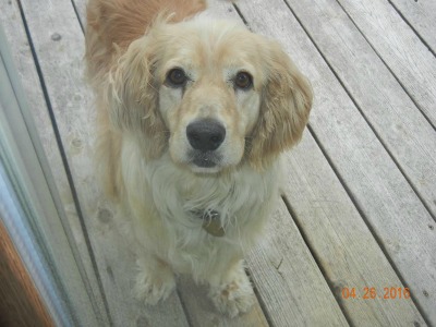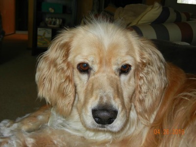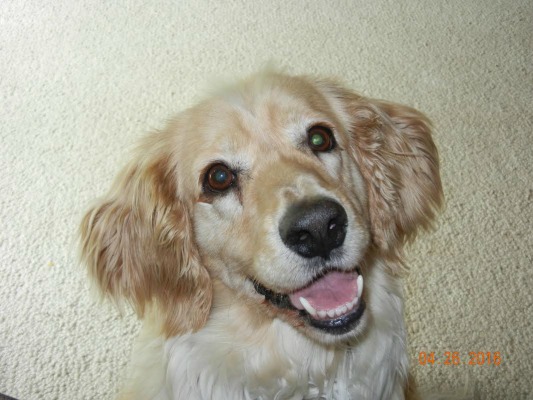 Hi, my name is Fred and I am a sweet 8 year old Cocker/Golden/Lab? I am very happy to be living inside of a home now, because I was always an outside dog. YES, I have quickly learned potty training. I go to the door and whine to let you know I need to go out.