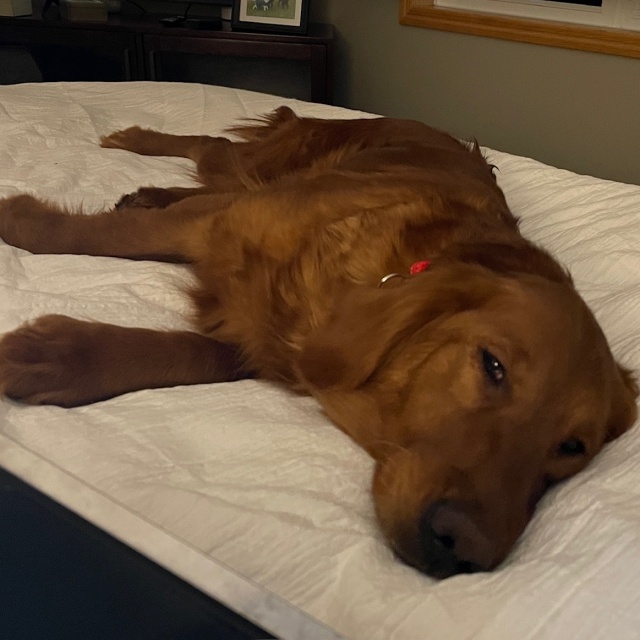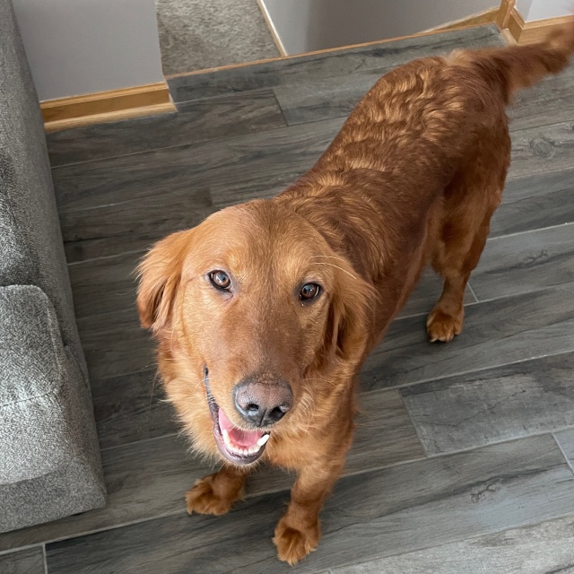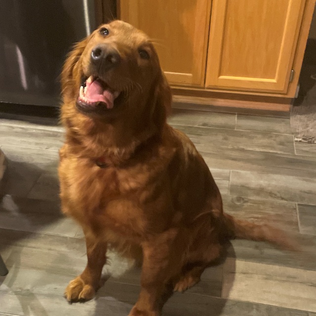 Ginger is a beautiful deep red Golden Retriever. She came to RAGOM when her family was relocated and could not take her along. She is full of energy and also is a bit of a climber and can scale a fence. Ginger will need a specific safety plan as a regular fence will not keep her contained. Other than that she is a very good girl. Ginger can live with children of any age. She can live with other dogs and cats. Ginger is a great leash walker and just loves to be around people. She will quickly become a treasured family companion.