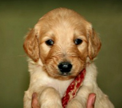 Thank you to the wonderful Anonymous donor who has given Ginger her name. Ginger is one of Journey's 12-111 sweet girl puppies. She weighed 12.9 oz at the first weigh in. Today she weighs 3 lbs 13 oz. She went from one of the very smallest to the middle of the pack. Ginger has had her nails clipped and had her first de-worming. She has a brown head with a lighter color body.