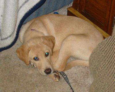 6/26/06: We would like you to meet Ginny!! She is a sweet little girl, 13 weeks old and weighs 20 pounds. She had her vet visit today and was updated on her shots and is being treated for worms. Ginny has already had her spay, so that business is taken care of!! She is shy of new experiences, but loves to cuddle!!