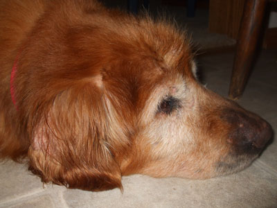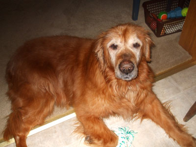 Goose has made the long trip from Iowa to Minnesota and the start of his GOLDEN life. His owners lost their home and surrendered him to Ragom. Goose does have a rather strange name but I believe it is fitting. He is so "silly".