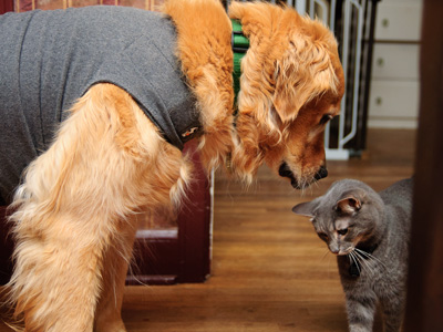 Cats? No problem. Although he is interested in my cats and likes to sniff them, he has not chased or threatened them in any way. I think we can safely call him "cat friendly."