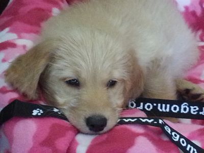 Anyone interested in adopting Griffin should contact their placement advisor. Potential adopters should be familiar with the needs of a young puppy and the amount of time, patience and commitment raising a puppy requires. As a pup, he will need someone home to continue his housetraining or with a flexible schedule to be home to let him out after a few hours. He is smart and not a very mouthy pup. He has the Golden desire to please and will be a lovely companion dog.