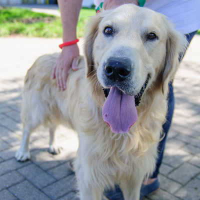 He has that great Golden personality. He rarely barks, wants to be with the people all the time, and will follow FM (foster mom) from room to room. He comes when called and knows his name. He is playful and happy, although sometimes he looks a little sad. It is unknown what landed him on the streets in Turkey, and we do not know what he went through. He has a few scabs and some scratches on his nose.