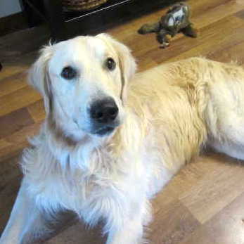 Gulliver is a beautiful boy from Turkey. He was found being housed and kept safe off the streets at a private vet’s office. The vet was not able to keep him and so looked for a rescuer for him. He made the transition from Turkey to our home in Lake Elmo amazingly easily, when you think of all the shocking changes he must have experienced after a very long flight and then another trip from the Chicago airport in a van. He is a beautiful light color; on his “passport,” the color was described as “champagne.” The vet said his color is often called “English cream,” and people import Goldens from England with this popular color.