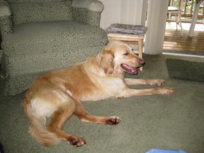 I am a new boy on RAGOM’s block and my name is Gunner 11-224. I came all the way to Maple Grove from Sioux Falls, SD. I owe a debt of gratitude to the wonderful RAGOM Transport Team and specifically John H. who really went the extra mile to bring me to safety. Also many thanks to Rona D. who helped me get ready for the trip. She saw that I had good care, necessary and complete medical attention and she put all my known history and papers in order. My paperwork conflicts on the question of whether I am a purebred Golden or a mix, and I’m not telling! I act like a Golden, I look like a Golden and my genes are predominantly Golden, as you will see from my pictures.
