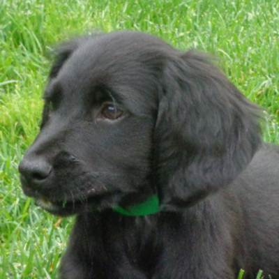 Gus is a six-week old puppy who was rescued by a Good Samaritan along with 4 of his littermates and given to RAGOM. His dad was a purebred Golden Retriever and mom was a yellow lab. Gus was nice enough to pose for me and I was able to get what I think is the best picture (Gus 12-224 c). Gus is not quite as wavy as his two brothers. He is lying by my side sleeping as I type and is such a little sweetie. He will be a very handsome adult dog, possibly looking very much like a flat-coated retriever. We have split up the 5 puppies, with the two females at one foster home and I’m the lucky foster mom that is fostering the three male puppies. I can’t speak to the females, but the males are very good little puppies.
