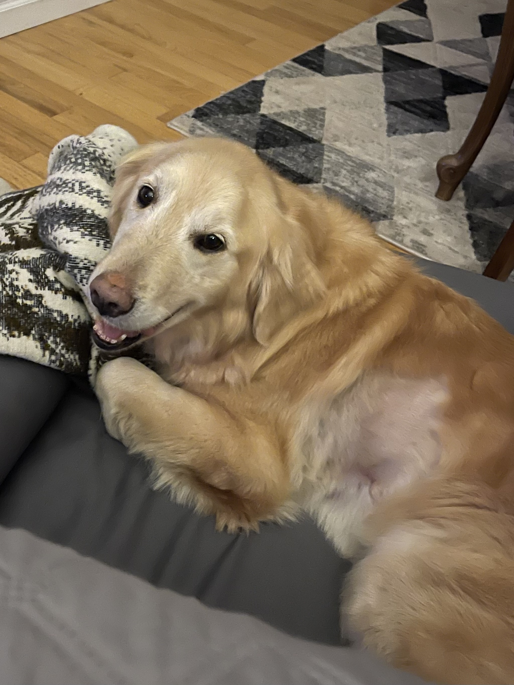 Hani (Pronounced Honey) is a purebred golden retriever joining us as part of the international rescue program from South Korea. Hani is a calm girl who is adapting well to home life. She was rescued from a high-kill shelter and treated for a variety of health conditions before making her way to the US. Hani enjoys the attention of her humans. She is reactive to other dogs and overly interested in cats. Being the only dog would be best for her. Additionally, she can get excited with treats so children need to be 10 and over.