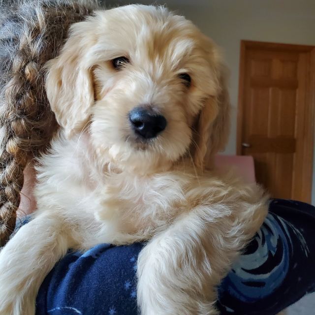 Ivy was surrendered to RAGOM from a commercial breeder. As with all puppies, she can adapt to a variety of home environments (children or not, other dogs or not, cats or not, fence or not) with the proper upbringing. Unfortunately, though, she is not a good candidate for living in a shared wall environment due to her barking. Prospective adopters must provide a detailed plan for bringing a puppy into their home, including plans for exercise, socialization, obedience, potty and crate training. Puppies are a big commitment, requiring several years of patience and consistent training to become well-mannered, confident family members.