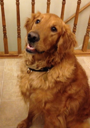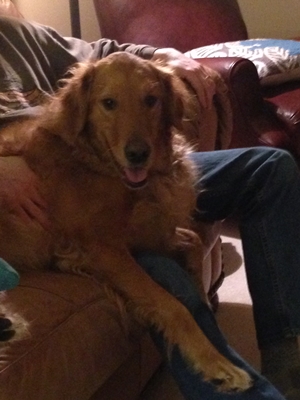 Jack came into RAGOM in early January from a loving family, who didn't have the time for him and decided he needed more space to run beyond their townhouse. He has been a great foster, quickly meeting our other dogs. He is calming down and had some excess energy to burn off. Tyson, 14-348 is helping Jack to get plenty of exercise. They are buds when outside. Jack enjoys chewing on toys and bouncing from one couch to the other to get some more attention. He is of the jealous variety, which is typical in the goldens.